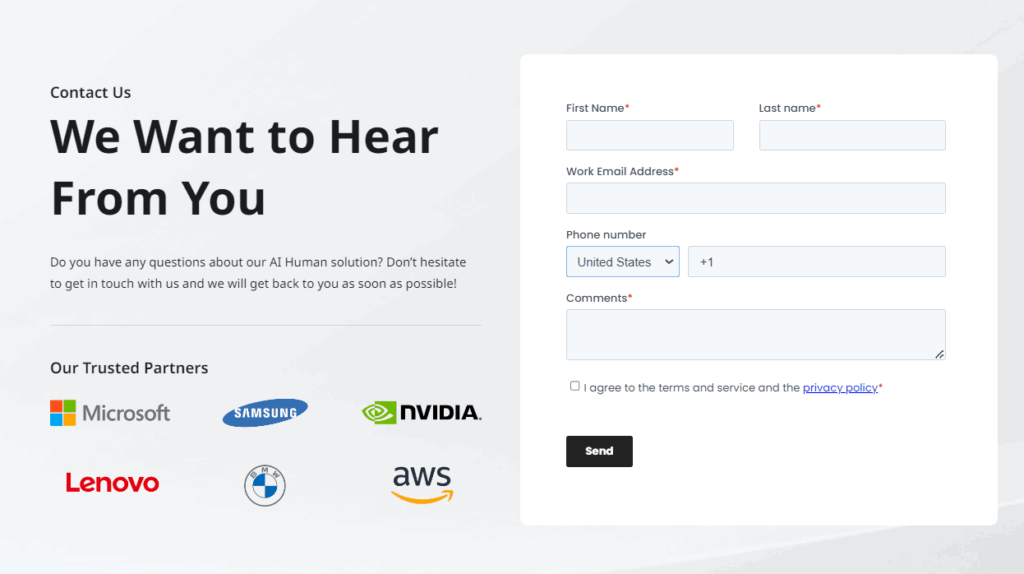 To contact Customer Support of AI Studios, you should fill out the contact form provided on their website. You’ll need to provide your first name, last name, work email address, phone number, and any comments or questions you have.
