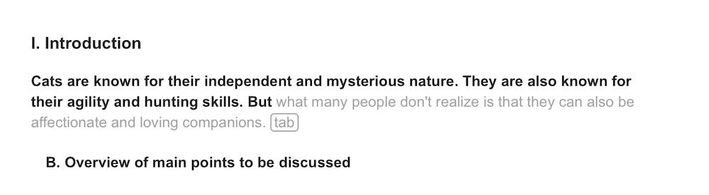 - From here, you can start to write your content. You can write it all yourself or lean on the autocomplete, which will suggest sentences and phrases to finish your thoughts.