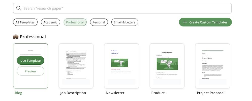 QuillBot Flow also provides various project templates that cater to different writing needs. Everything from academic essays to business reports are represented here.